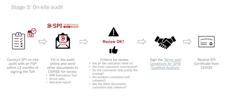 As of November 2022, Cerise offers individual qualifications for internal auditors (staff of FSPs) only in the frame co-financed projects and with the support of a qualified external auditor in the field. Everyone who wishes to train on SPI will be able to follow the online training courses on SPI Online starting in the second quarter of 2023. Learn more