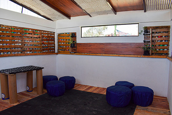 También se firmó un convenio con Extend Verde, una organización dedicada a la recolección de desechos y capacitación a las personas en temas verdes. Una de sus actividades es la creación de eco-ladrillos, que consisten en botellas PET vacías y limpias que se rellenan con residuos inorgánicos limpios hasta lograr una botella dura parecida a un ladrillo. Con el aporte de eco-ladrillos de parte de CRECER y otras instituciones, se logró la construcción de un aula de música para una escuela en el municipio de Achocalla, en las afueras de la ciudad.