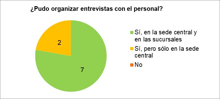 Para realizar entrevistas con el personal del PSF, los profesionales en GDS entrevistados usaron principalmente el teléfono o herramientas de visioconferencia como Zoom, Teams, Skype o Whatsapp. Sin embargo, cuando el contexto lo permitió, tendieron a ir al campo y realizar entrevistas en persona. Este fue particularmente el caso de los profesionales en GDS establecidos en el país donde se realizó la misión. Para Dr Tej Hari Ghimire, “ir al campo también fue una buena oportunidad de hacer conciencia sobre las medidas de protección que deben tomarse para protegerse contra el COVID-19 en las áreas rurales remotas.” Este enfoque mixto permitió a la mayoría de encuestados entrevistar al personal tanto de la oficina central como a nivel de las sucursales: “fue una buena experiencia, el enfoque mixto funcionó bien” compartió Edgar Juárez Sepúlveda. Aunque, en otros contextos (falta de conectividad, sin posibilidad de ir al campo), los profesionales en GDS tuvieron que dejar de entrevistar al personal a nivel de sucursal.